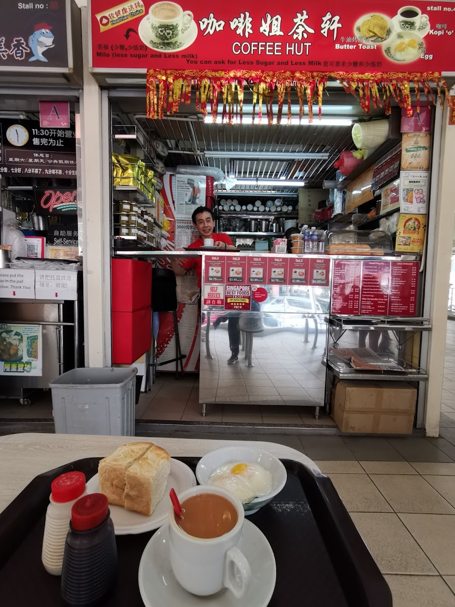 The first thing that stands out about Coffee Hut is its easygoing atmosphere. Because it’s set within a traditional food centre, the vibe feels authentic and unpretentious. You’ll notice locals dropping by for a quick cup while chatting with friends or taking a short break from the bustle of the neighborhood. The setting makes it feel less like a formal restaurant and more like a familiar community coffee spot where people naturally gather.